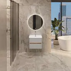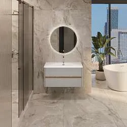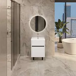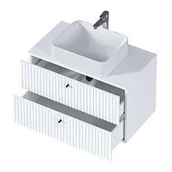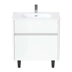 Тумба с раковиной, которая отличается невероятной компактностью и уникальными габаритами, которые не встретить ни у одной другой популярной на рынке модели - глубина тумбы составляет всего 22 см. Это отличное решение для небольших ванных комнат, в которых остро стоит вопрос экономии пространства. Несмотря на небольшие размеры тумба по-прежнему остается бескомпромиссно функциональной - она включает в себя две закрытые и две открытые полки разной высоты, которые позволяют закрыть вопрос хранения абсолютно любых вещей и предметов. Лаконичный дизайн с идеальной геометрией на сегодняшний день актуален как никогда ранее.Характеристики: